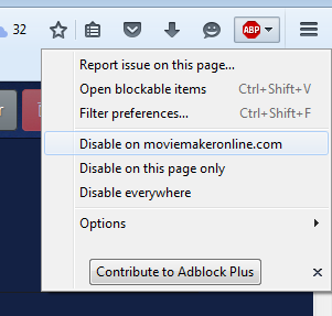 Ilmainen mainosesto kytketään pois päältä sivustolla moviemakeronline.com näin: